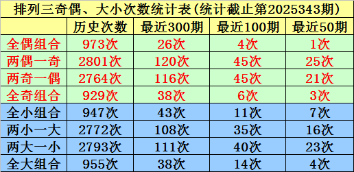 大小、奇偶分析:在招引40期奖号中,两大一小出现21期,刻下遗漏1期、全大出现4期,刻下遗漏20期、全小出现4期,刻下遗漏0期、两小一大出现11期,刻下遗漏4期,本期看好开出两小一大;两奇一偶有21次,当今遗漏1期、全奇有3次,当今遗漏11期、全偶有1次,当今遗漏29期、两偶一奇有25次,当今遗漏0次,本期瞻望出现全偶。