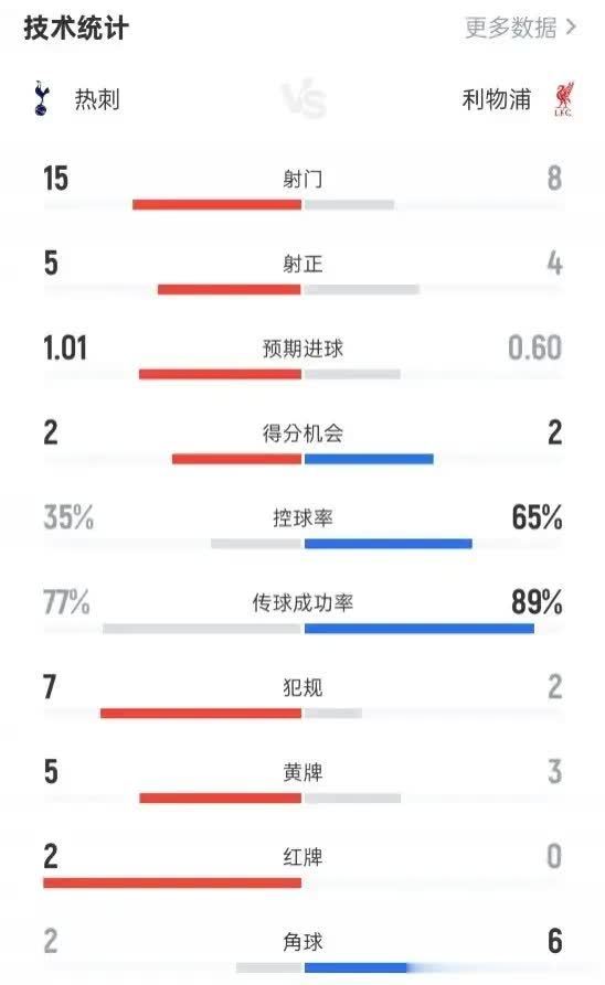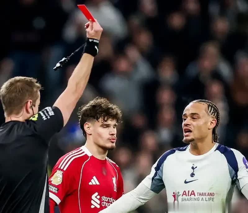 这场比赛的戏剧性,从第30分钟就注定拉满。热刺10号哈维·西蒙斯在逼抢中蹬踏范戴克小腿,主裁判先出示黄牌,经VAR介入后改判直红罚下。这本该是利物浦掌控全局的初始,却没思到成了“絮叨格局”的启动键。补时阶段,罗梅罗拼抢后的附加行为吃到第二张黄牌,两黄变一红离场,热刺就此沦为9东说念主作战。数据统计夸耀,这是2007年10月以来,首支在对阵利物浦的英超比赛中吃到两张红牌的球队,热刺用最浮松的姿色,续写了对赤军的悲情历史。