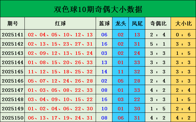 上期蓝球号码08,为小偶数,近50期蓝球奇偶比23:27,奇数偶数出号率偶数占优;近10期蓝球奇偶比2:8,奇数偶数出号率偶数占优。